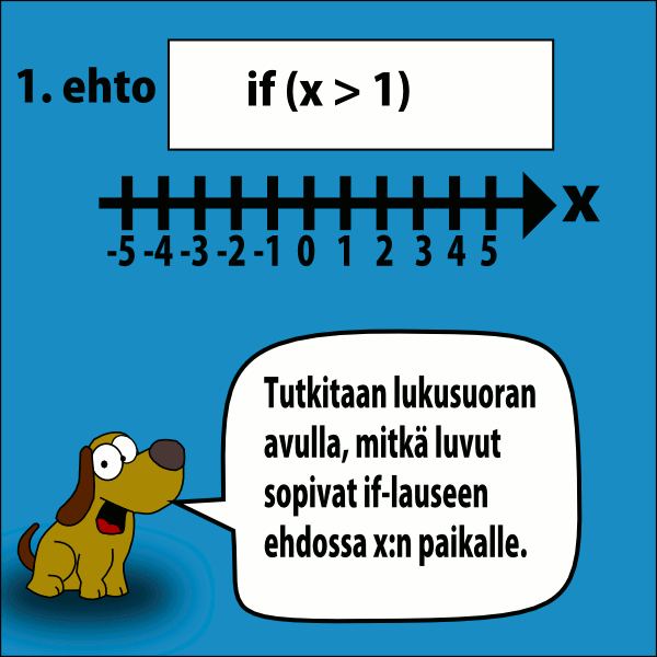 Animaatiot Jaa Koodimurskain if-lause If-else -lause If-lauseen ehdot lukusuoralla JA ja TAI-operaattorit