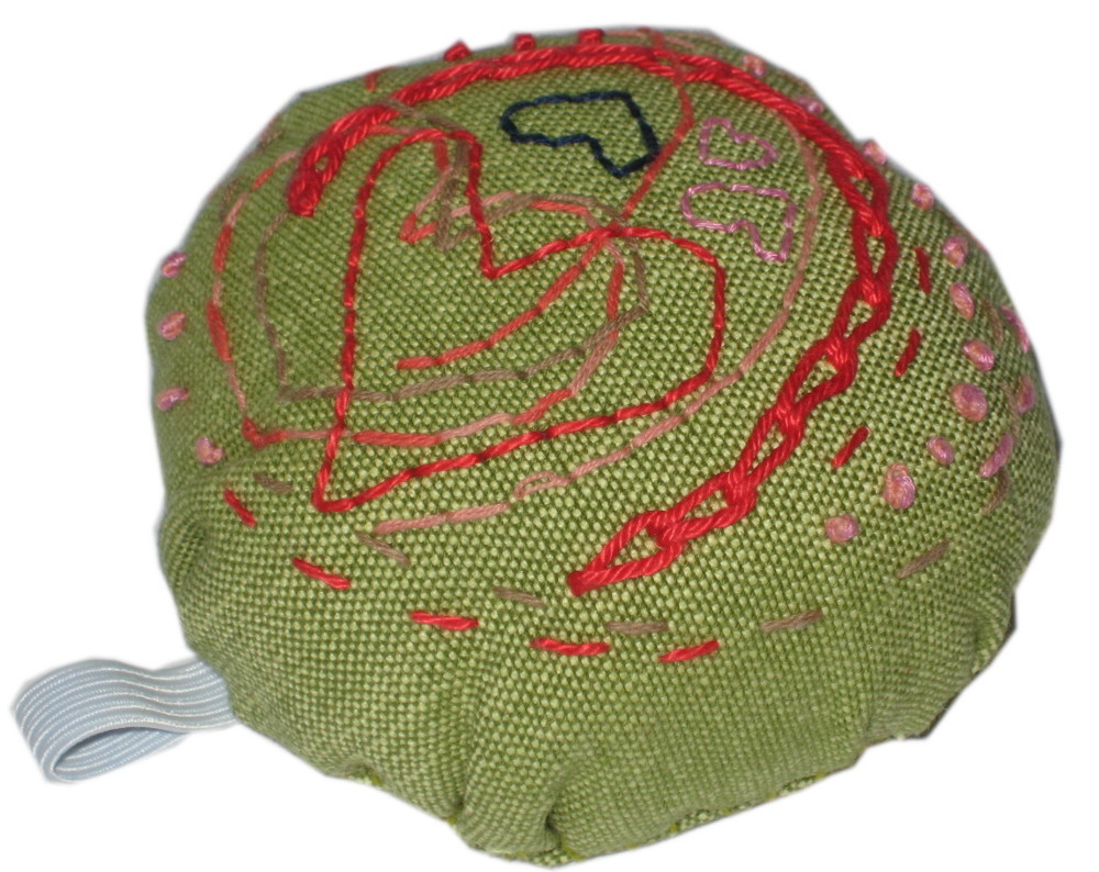 Amanda harjoitteli kirjontaharjoitus-tehtävässä erilaisia pistoja lukuvuonna 2014-2015.