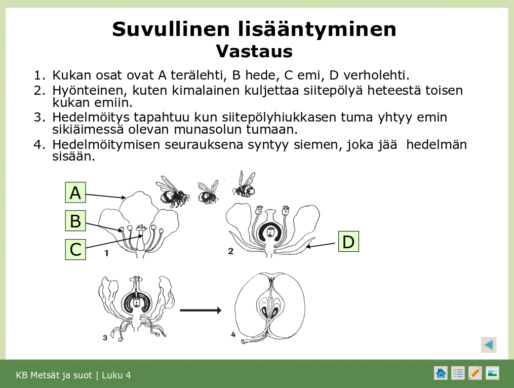 Verholehdet suojaavat nuppua. Terälehtien tarkoituksena on pölyttäjien kuten mehiläisten houkutteleminen.