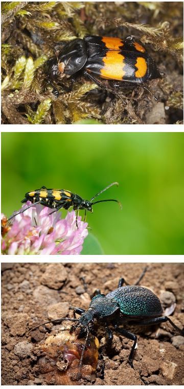 Maakiitäjäiset ovat yleisväriltään tummia, nopeita juoksijoita (alin kuva). Ne saalistavat muita hyönteisiä juosten.