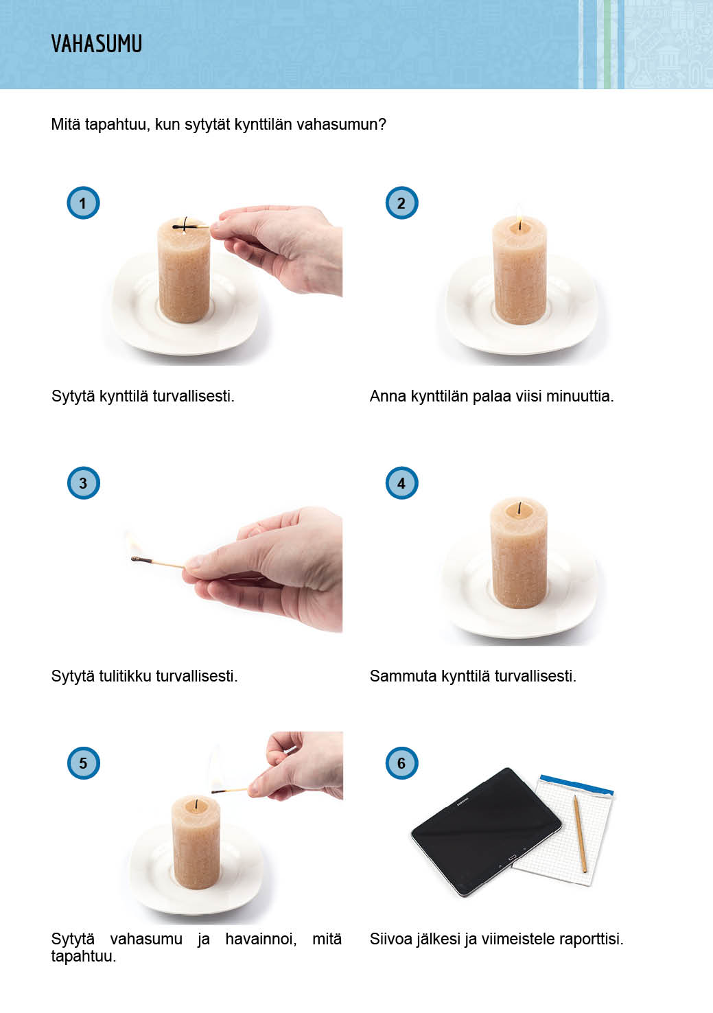 Jakaminen Sulje 4. Mitä tapahtuu, kun sytytät kynttilän vahasumun? Pysyvä osoite https://peda.net/id/cc3c0213deb Pysyvä tiedoston latausosoite https://peda.net/id/cc3c0213deb:file/download/515baf07fcb5128f248069ac3521efededf8d005/t4-vahasumu.jpg Jakaminen muihin palveluihin Share this page to Facebook QR-koodi