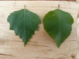 There are two types of birch trees. The leaves of the silver birch have a triangle-like shape. The leaves of the white birch have a round shape.