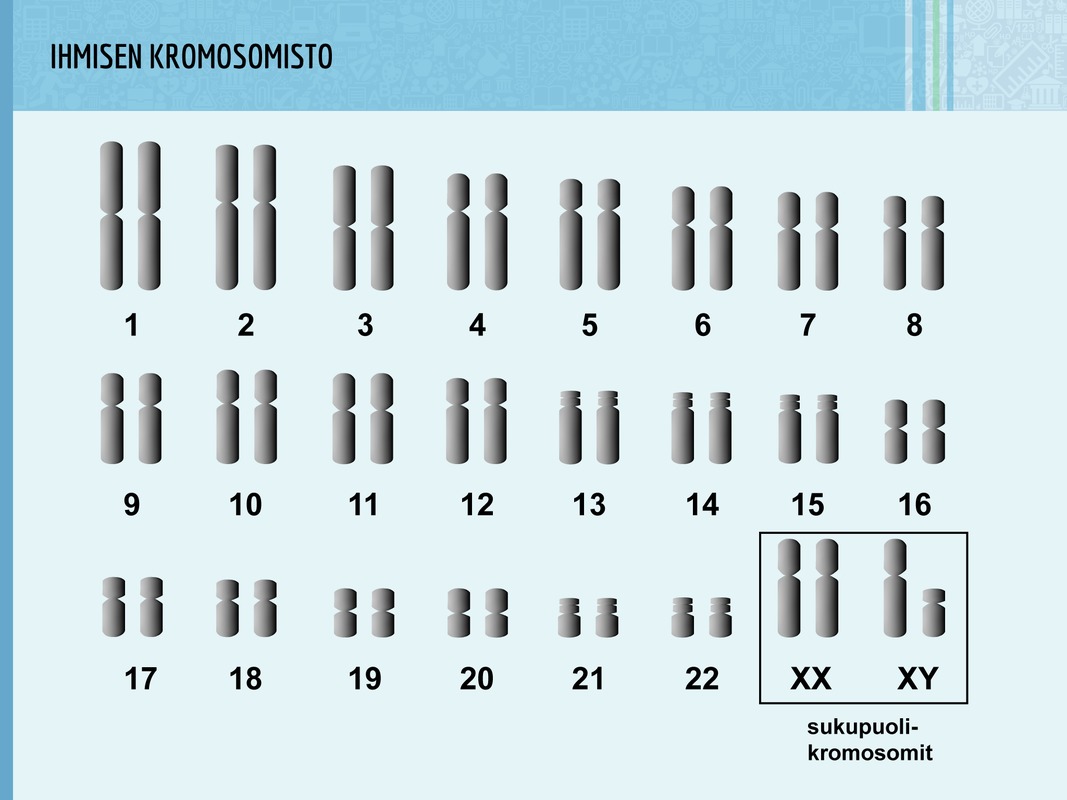 Ihmisellä on kussakin solussa – sukusoluja eli muna- ja siittiösoluja lukuun ottamatta – 46 kromosomia. Ne poikkeavat toisistaan hieman kooltaan ja muodoltaan.
