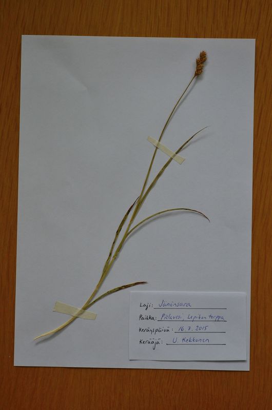 Laita kasvit muovipussiin, jotta ne eivät ne nuukahda eivätkä kuihdu. Vie kasvit mahdollisimman pian prässättäviksi. - Asettele kukin kasvi sanomalehden väliin mahdollisimman edustavasti ja siten, että kasvi mahtuu aikanaan paperille kiinnitettäväksi. Laita kasvin mukaan muistilappu, jossa lukee laji, keräysaika ja -paikka.