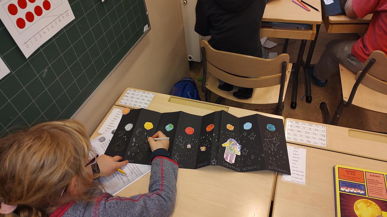 - jokainen tekee itselleen "haitarin", kuvittaen ja nimeten planeetat sekä etsien vähintään yhdestä planeetasta enemmän tietoa ja kirjoittaen tiedot ko. planeetan kohdalle.