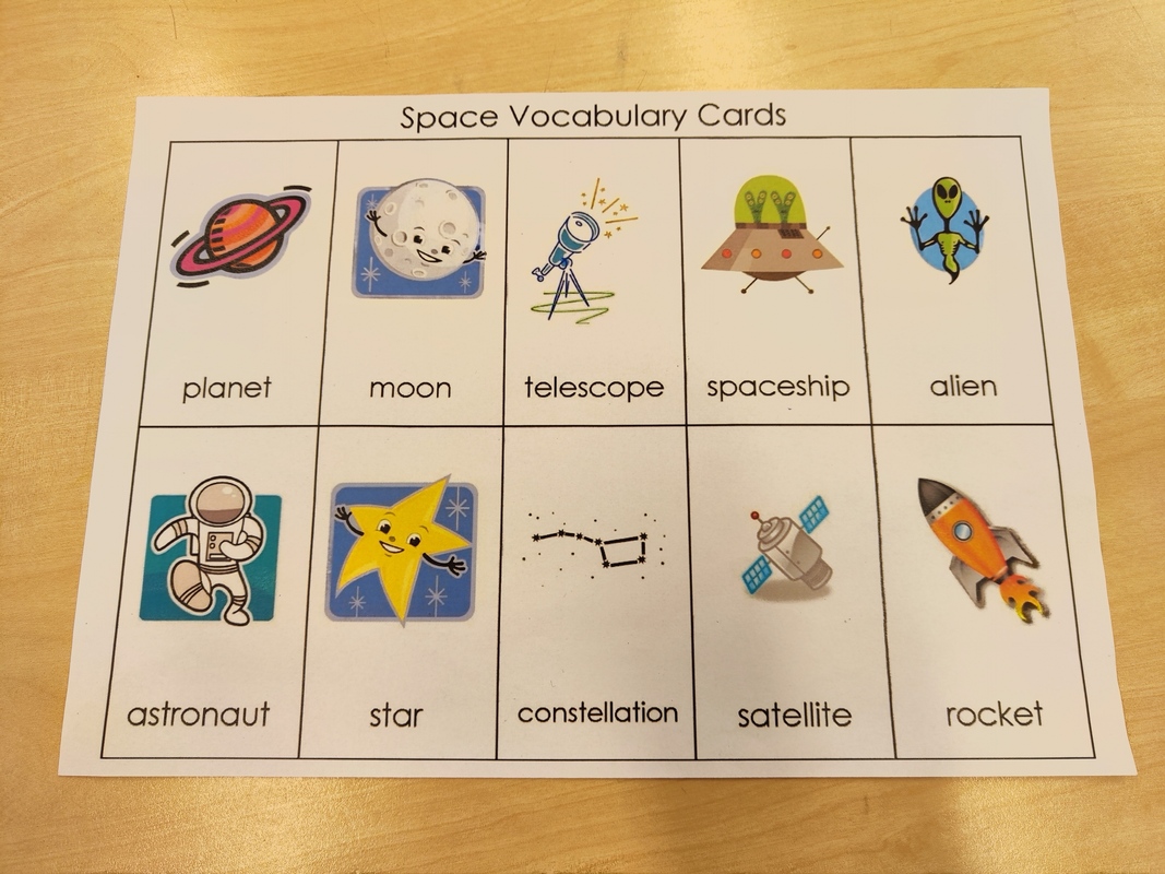 Paja oli yhdistelmä englantia ja kuvataidetta avaruusteeman mukaisesti. Aluksi kerrattiin Aurinkokunnan planeetat suomeksi ja koottiin ne taululle oikeaan järjestykseen. Sen jälkeen tutustuttiin englanninkielisiin nimiin ja harjoiteltiin ääntämistä kuvasanakorttien avulla. Tutustuttiin myös muutamiin muihin avaruussanoihin.