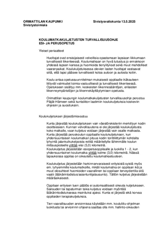 Koulukuljetusten turvallisuusohje Jaa Turvallisuusohje Koulumatkakuljetusten turvallisuusohje Esi- ja perusopetus 2025.pdf 31.7 kt