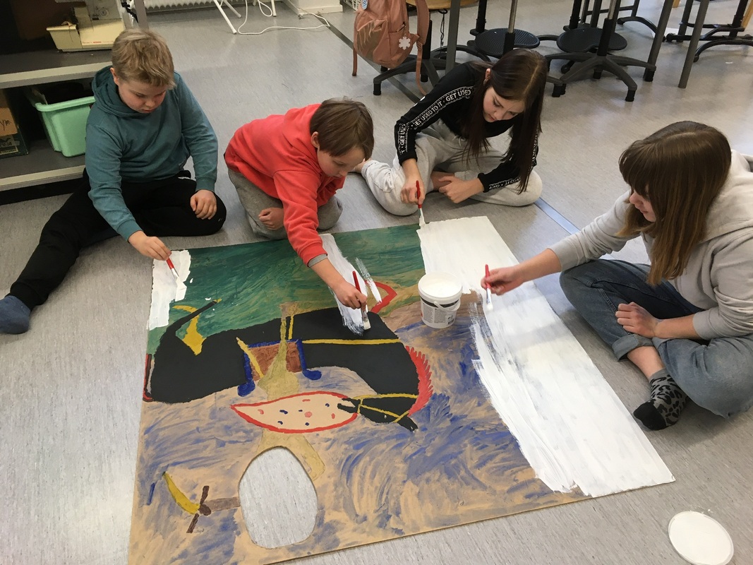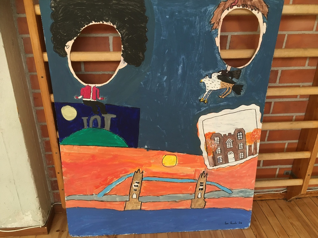 London is calling - ryhmän taidetta Jaa Matkakuvia Katselutila Lyhytvalinnaiskurssilla tutustuimme Lontoon nähtävyyksiin ja teimme lavasteita jokakeväiseen Rok Airlines - tapahtumaan