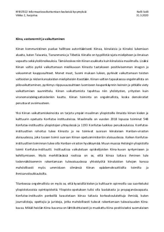 Vk2 Jaa Sulje 2.vk pohdittiin esseessä Kiinan politiikkaa, sen vastanormeja ja vaikuttamista. Tämän tiedoston tekstivastine: (tyhjä tekstivastine) nekasvii_vk2_harj.pdf 96.7 kt Kommentit Kirjaudu sisään lisätäksesi tähän kommentin