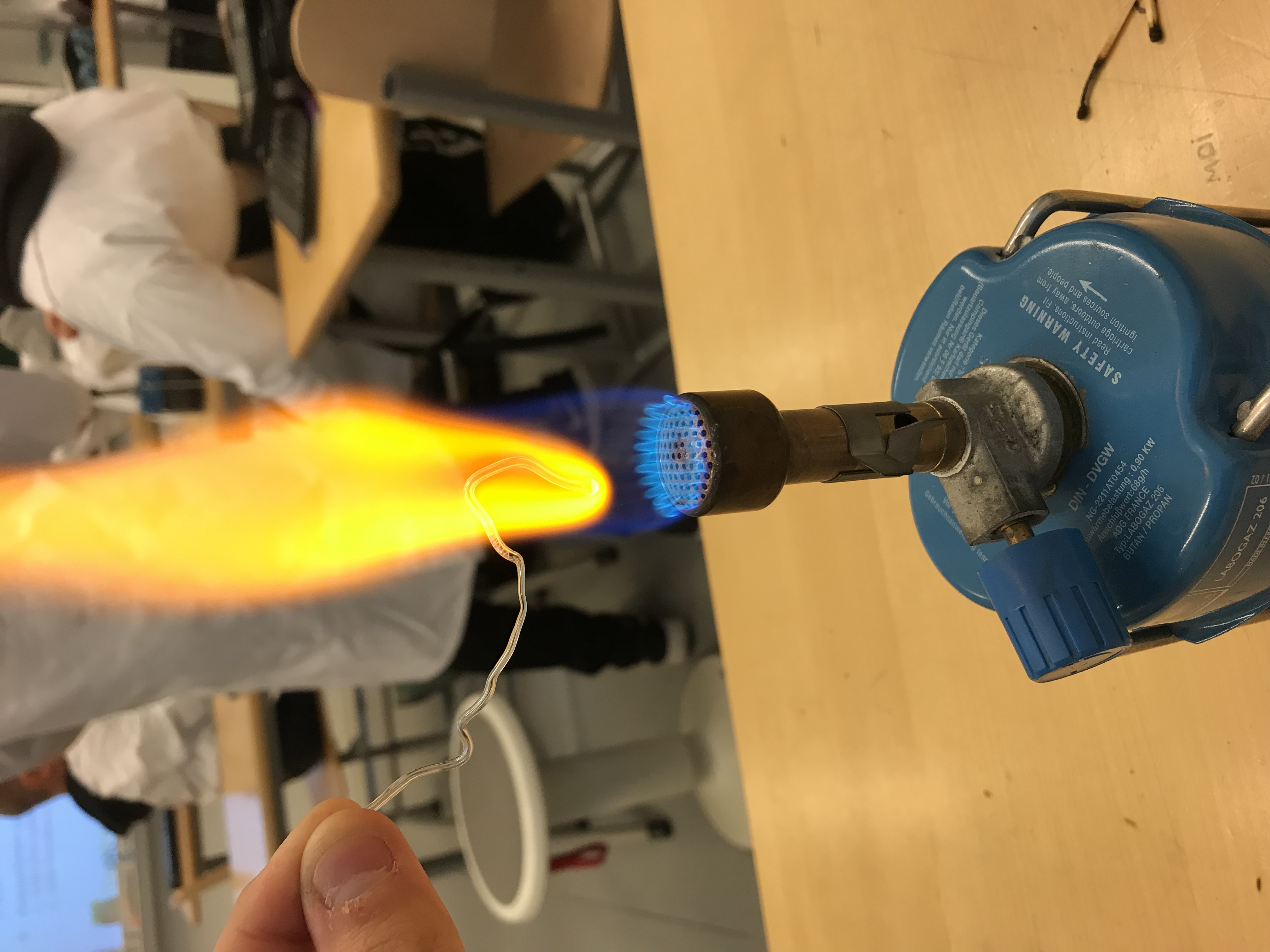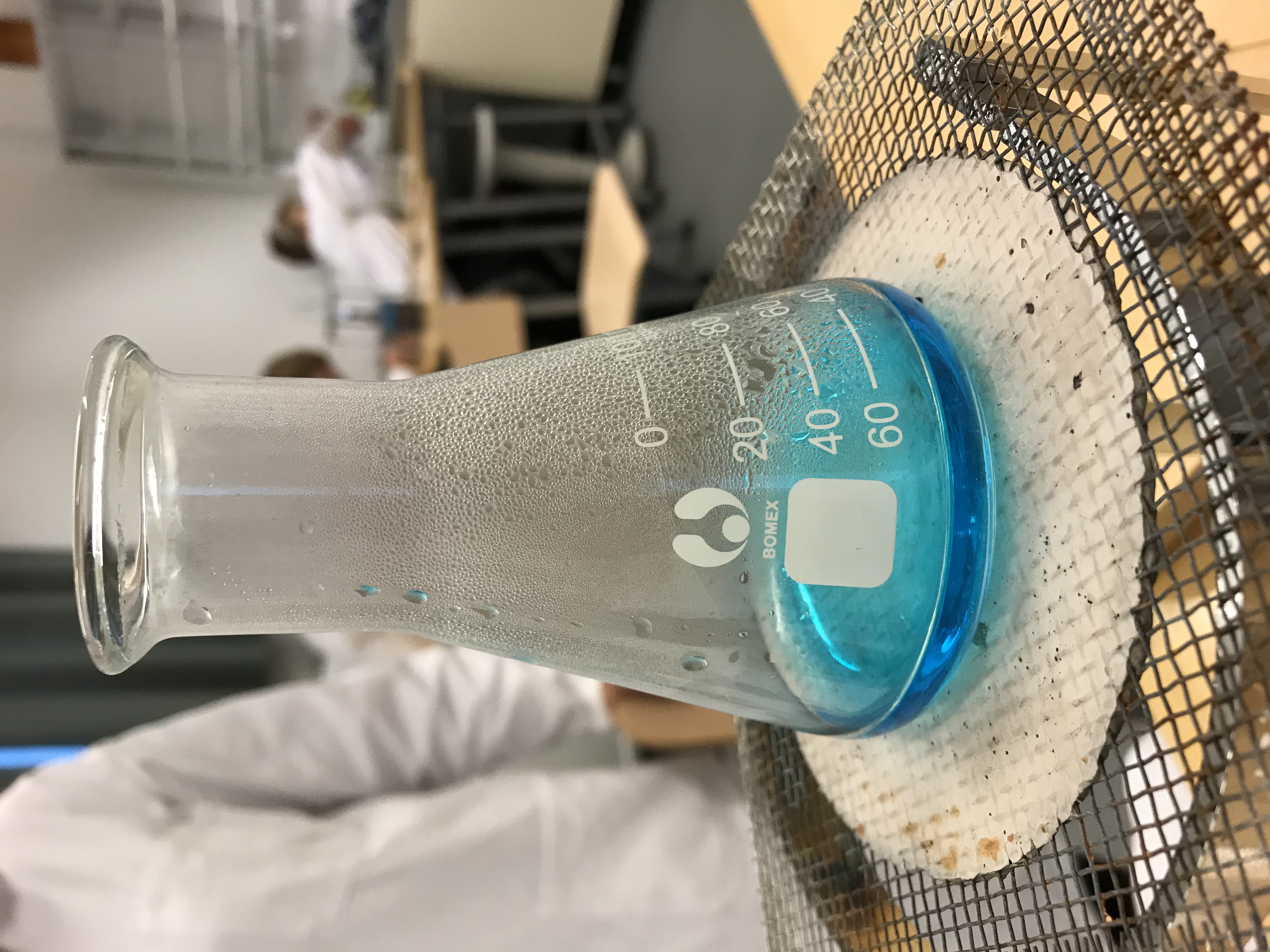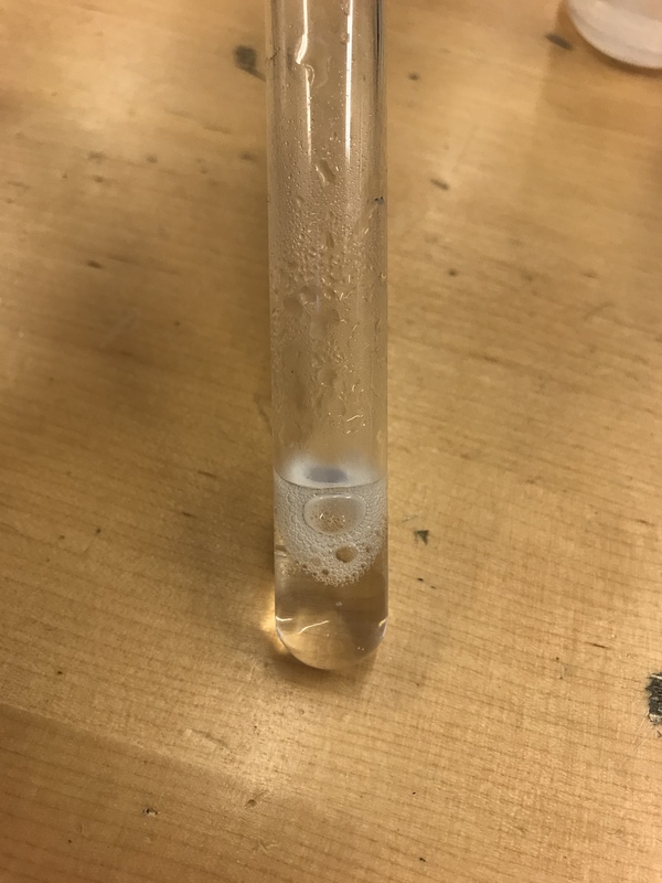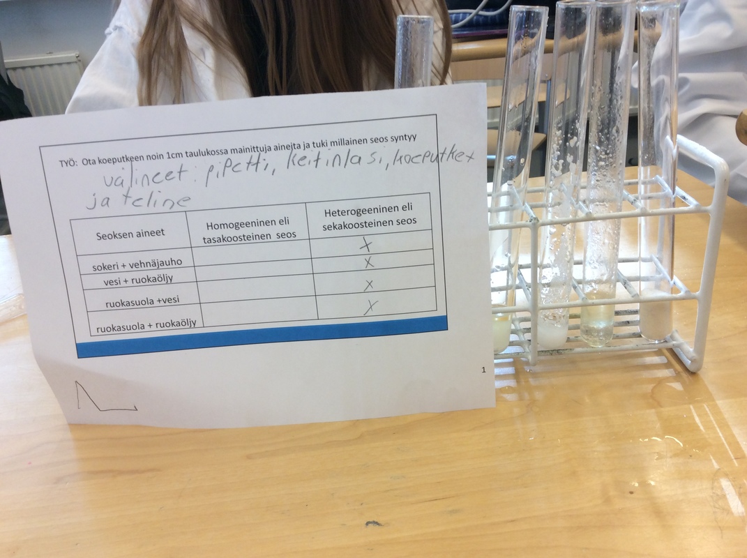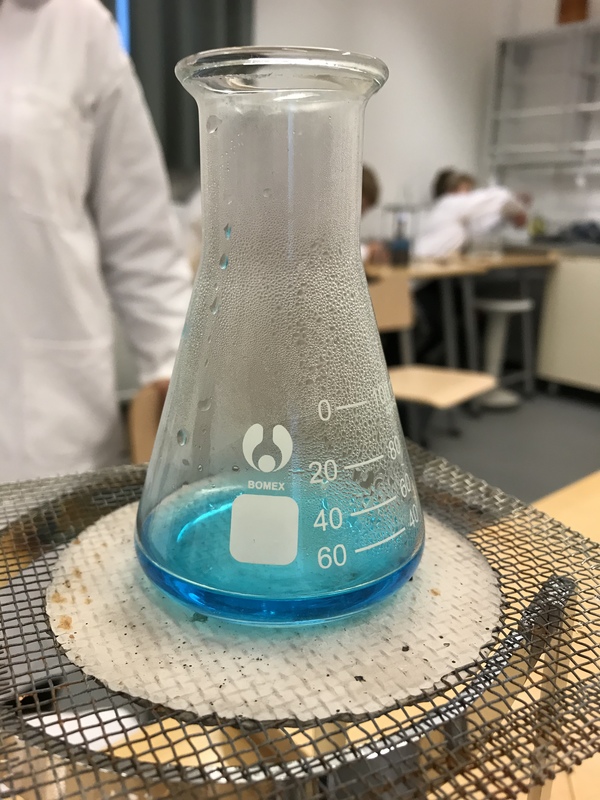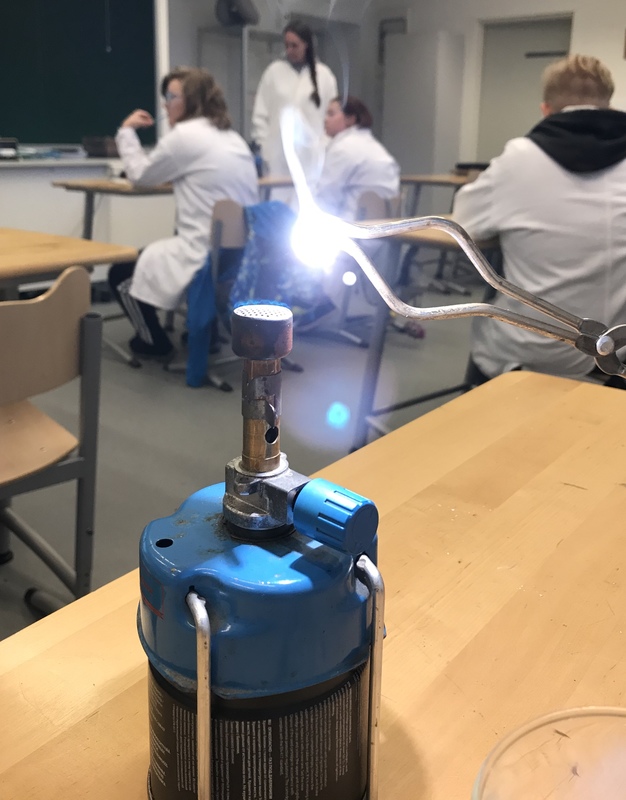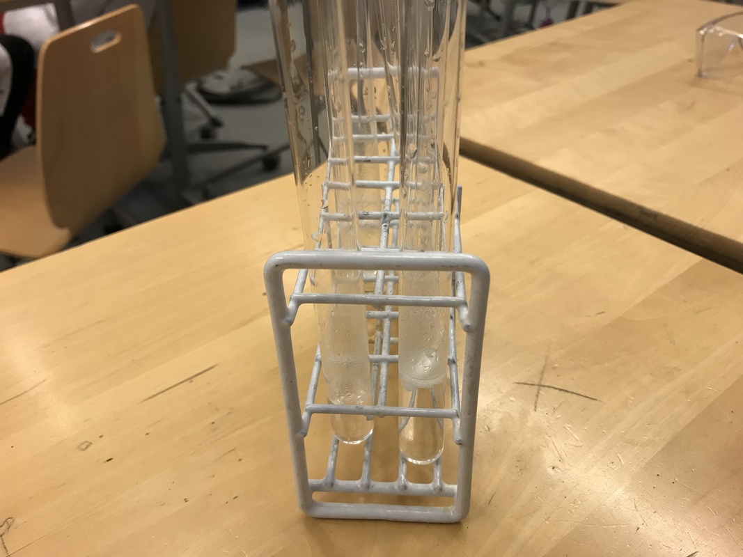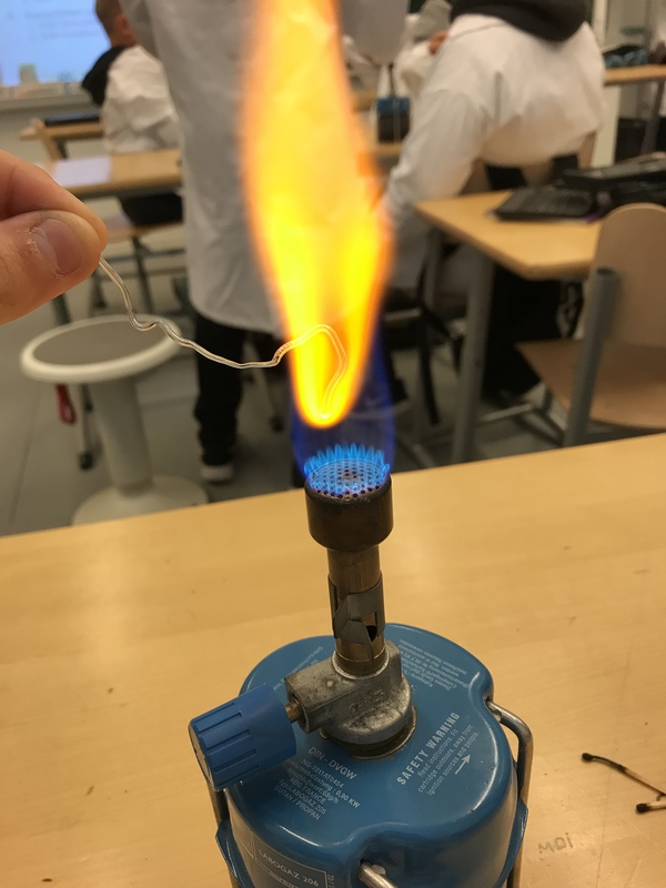 Laitoimme vettä ja sokeri kuppiin ja alle kaasupullon. Kaasupullo lämmitti sitä niin kauan että suola vesi haihtui ja niistä tuli pieniä valkeita rakeita