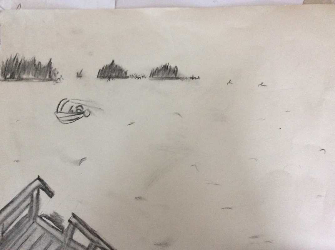 Missä epäonnistuin? Miksi? Piti piirtää itsestään kuva jossain mutta panostin enemmän maisemaan enkä osannut enää piirtää maisemaan itseäni