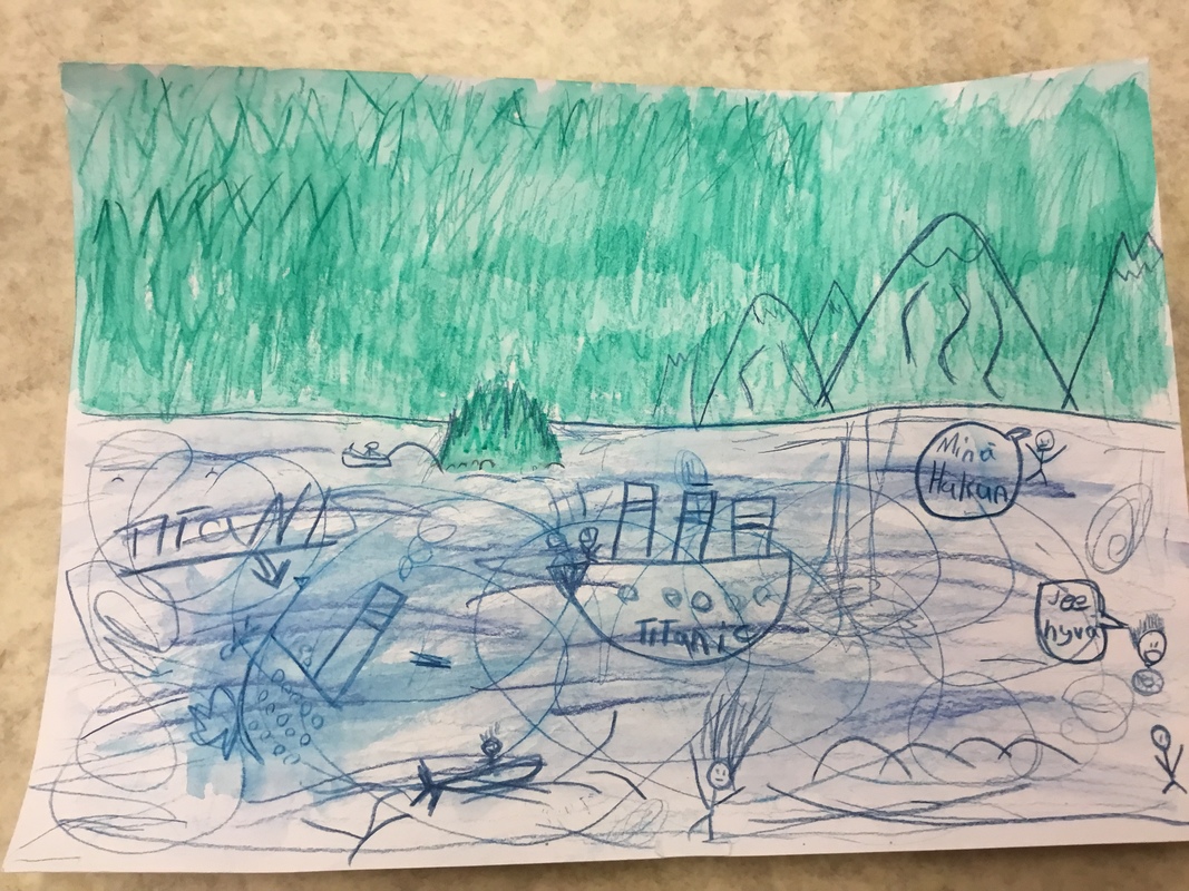 Mitä kuva esittää. Meidän mökki maisemaa jossa Titanic uppoaa