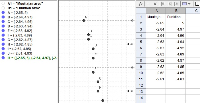 Pisteet osuvat kuvaajalle, mutta niihin pitää zoomata hyvin lähelle jotta ne erottuvat osumaan eri kohtiin.