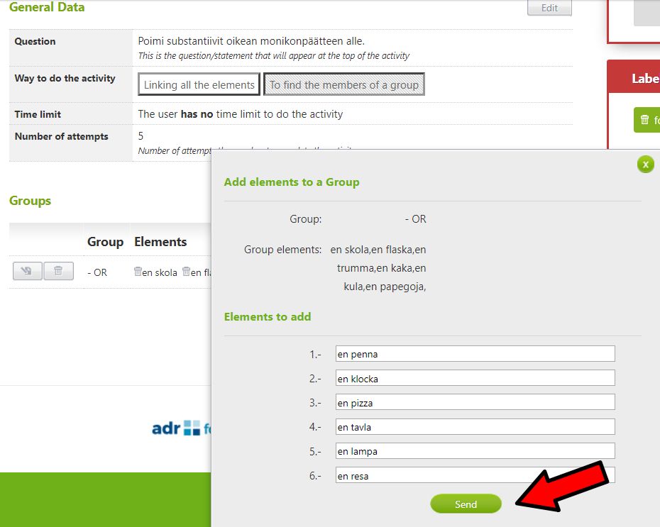 Matching Game -tehtävätyyppi