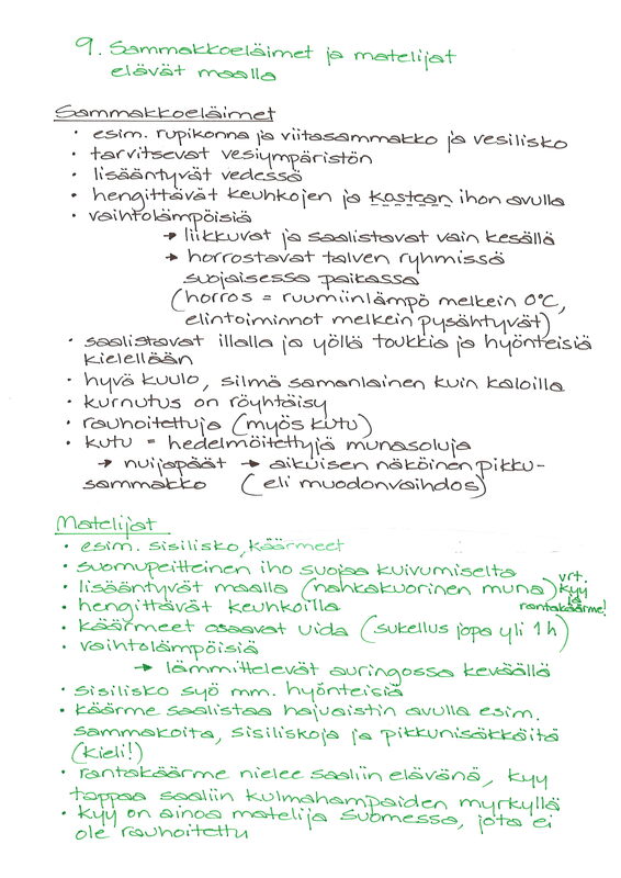 9. Sammakkoeläimet ja matelijat elävät maalla