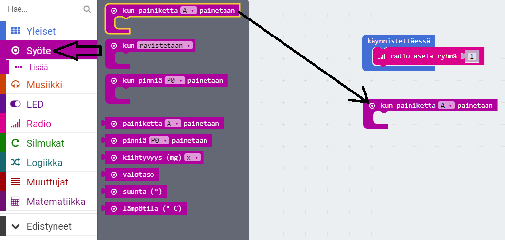 Oppilaan mikro-ohjaimen ohjelmointi vastauslaitteeksi