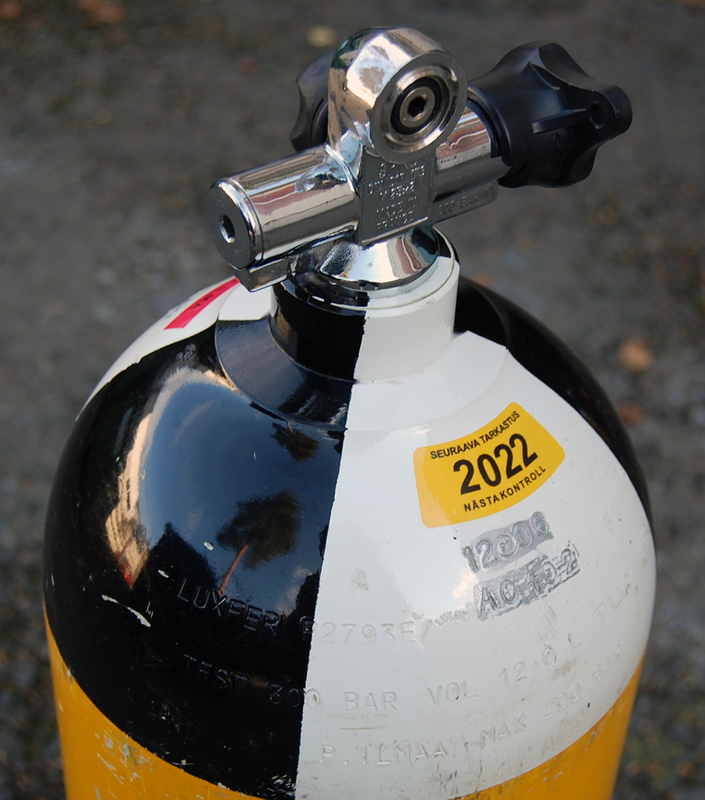 Myös tavallisessa sukeltajan pullossa on paineilmaa (katso kuva). Pullon yläpään musta väri tarkoittaa typpeä ja valkoinen happea. Tähän pulloon on puristettu 2 400 litraa tavallista ilmaa.