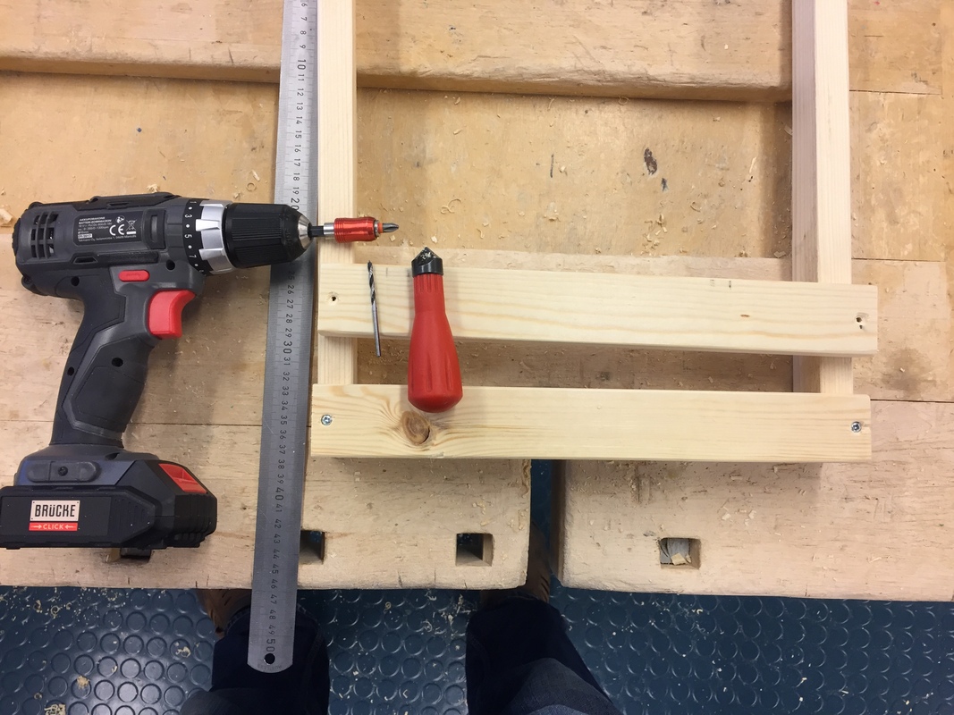 Alla: Työn vaikeusasteen mukaan, voit kiinnittää osat joko liima-ruuvi-liitoksella tai sitten teet liitoksen upotettuna. Upotukseen kätetään puutappia.
