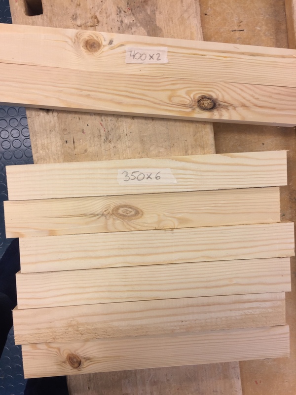 Alla: Osat sahattuna. 6x30cm ja 2 kpl 40cm (pystypuut).