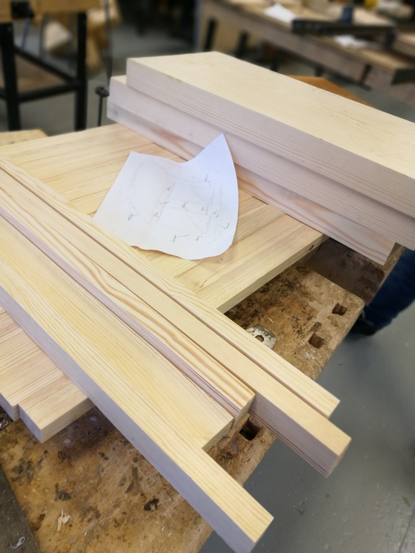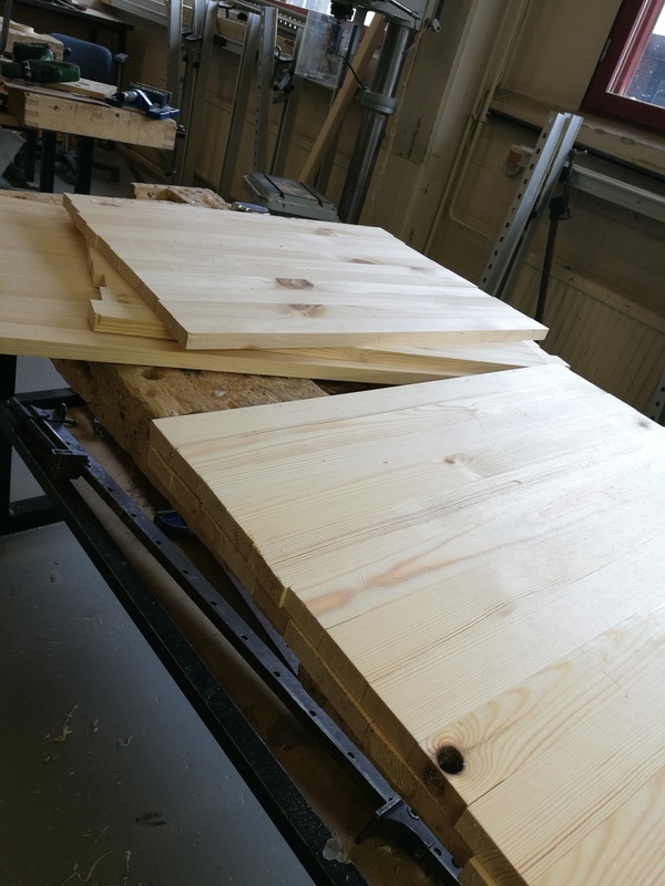 Teimme 2 liimalevyä, ja sitten höyläsimme ja hioimme ne. Kuva ei tullut.