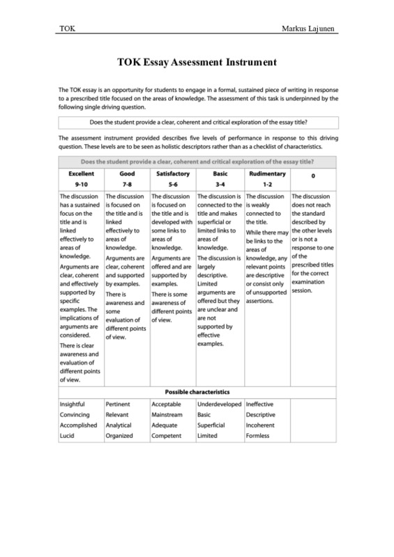 TOK essay assessment instruments Jaa Sulje Tämän tiedoston tekstivastine: (tyhjä tekstivastine) TOK2022EssayAss.pdf 319.3 kt Kommentit Kirjaudu sisään lisätäksesi tähän kommentin