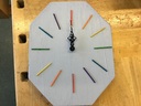 -Käytin työssä puuta, maalia, viisareita, kellon koneistoa ja tikkuja.