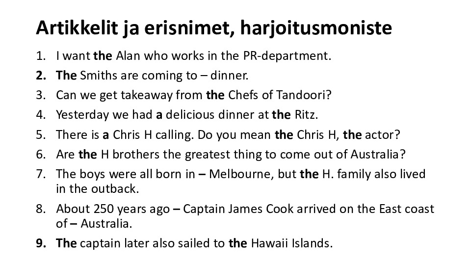 Artikkelit ja erisnimet, harjoitusmoniste.pdf Jaa Sulje Tämän tiedoston tekstivastine: (tyhjä tekstivastine) Artikkelit ja erisnimet, harjoitusmoniste.pdf 187 kt