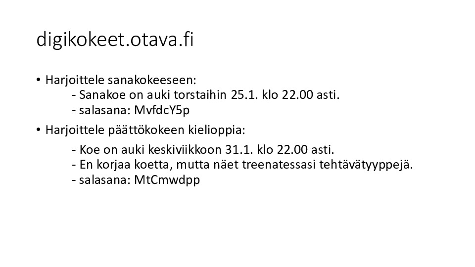 Harjoittele sanakokeeseen ja päättökokeeseen.pdf Jaa Sulje Tämän tiedoston tekstivastine: (tyhjä tekstivastine) Harjoittele sanakokeeseen ja päättökokeeseen.pdf 104.8 kt