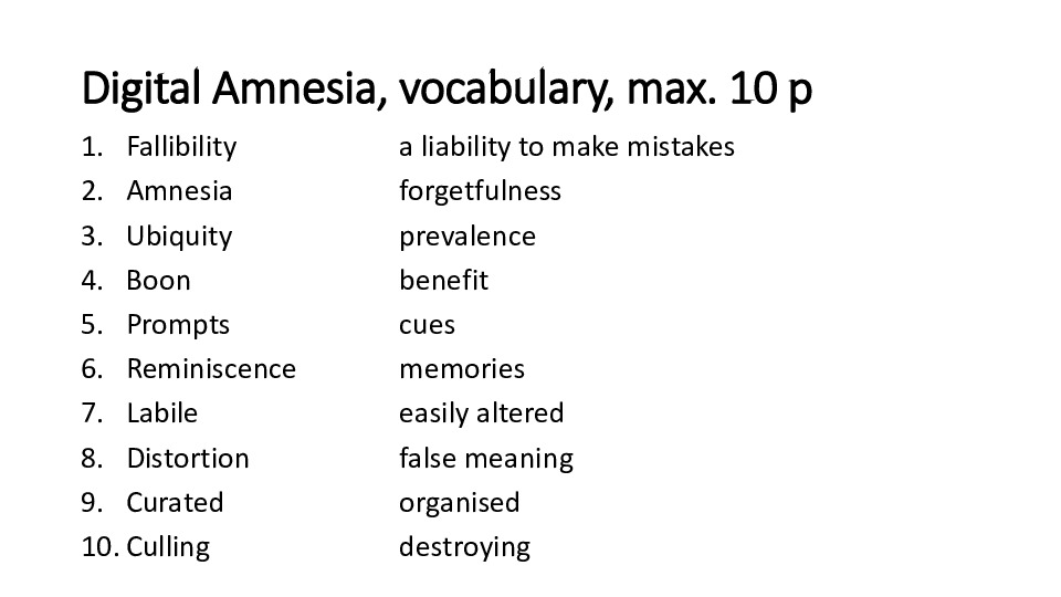Digital Amnesia, vocabulary, max 10 p.pdf Jaa Sulje Tämän tiedoston tekstivastine: (tyhjä tekstivastine) Digital Amnesia, vocabulary, max 10 p.pdf 404.7 kt