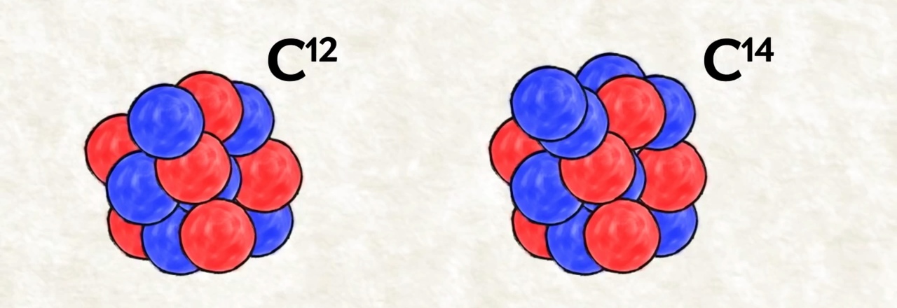 Tavallisessa hiiliatomissa on kuusi protonia ja kuusi neutronia. Sitä kutsutaan hiilen isotoopiksi 12. Hiilellä on myös raskaampi radioaktiivinen isotooppi 14, joka sisältää kahdeksan neutronia.