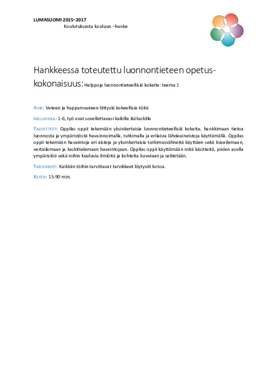 Helppoja luonnontieteellisiä kokeita: teema 1. Jaa Sulje Tekijä: Anniina Koliseva Opeohje 1 kommenteissa Tämän tiedoston tekstivastine: (tyhjä tekstivastine) Helppoja luonnontieteellisiä kokeita_teema 1.pdf 742.4 kt Kommentit Anniina Koliseva 27.11.2016 klo 18.50 Opeohje1Liitteet: OpeOhjeet1.pdf Kirjaudu sisään lisätäksesi tähän kommentin