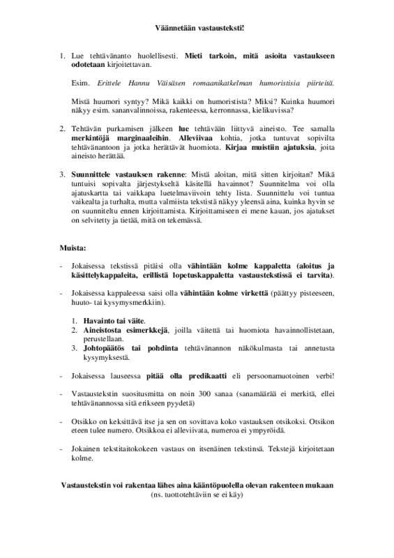 Väännetään vastausteksti! -ohje tekstitaitovastauksen rakentamiseen Jaa Sulje Tekijä: Tiina Kokkoniemi Tämän tiedoston tekstivastine: (tyhjä tekstivastine) Väännetään vastausteksti.pdf 31.3 kt