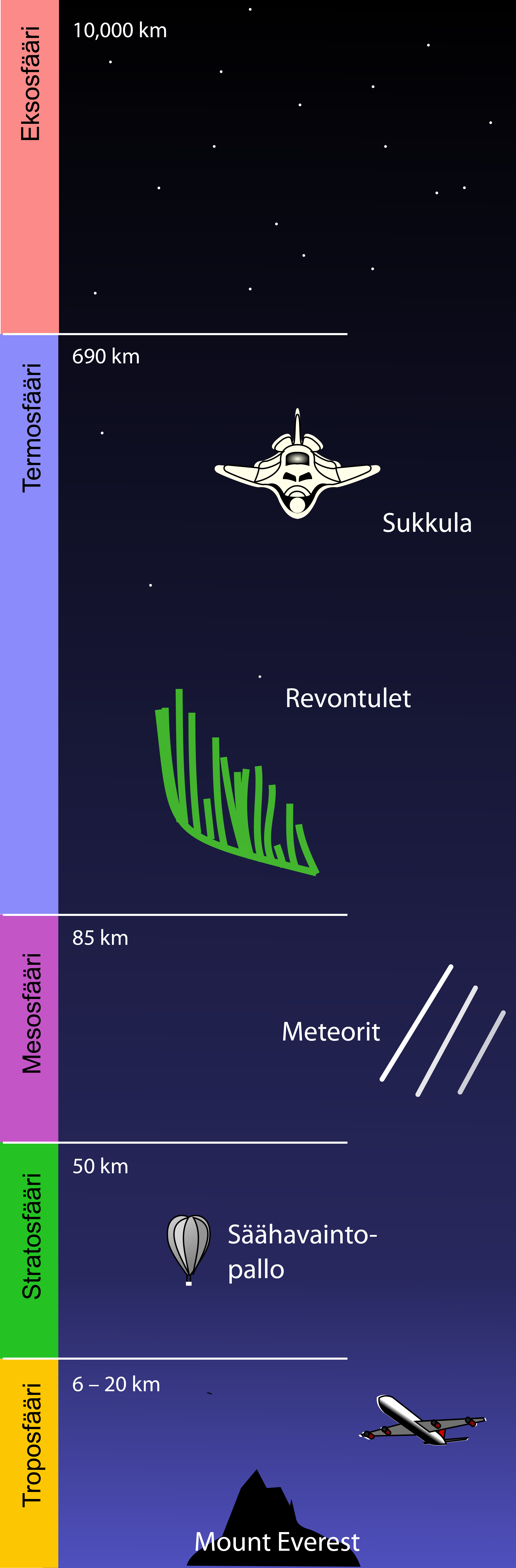 Jakaminen Sulje Ilmakehässä voidaan erottaa erilaisia kerroksia. Ilma harvenee ylös päin mentäessä hiljalleen kuin liukuväri, joten tarkkoja rajoja ei ole. Pysyvä osoite https://peda.net/id/2MT4QT Pysyvä tiedoston latausosoite https://peda.net/id/2MT4QT:file/download/3b277b563d4e5b20b0e1150eb4aca0558aa75084/ilmakehan_kerrokset.png Jakaminen muihin palveluihin Share this page to Facebook QR-koodi