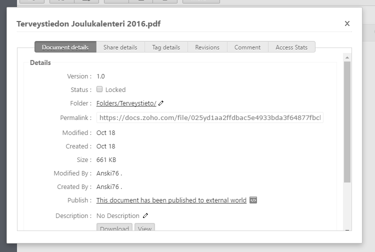 Zoho docs ja pdf-tiedoston upottaminen