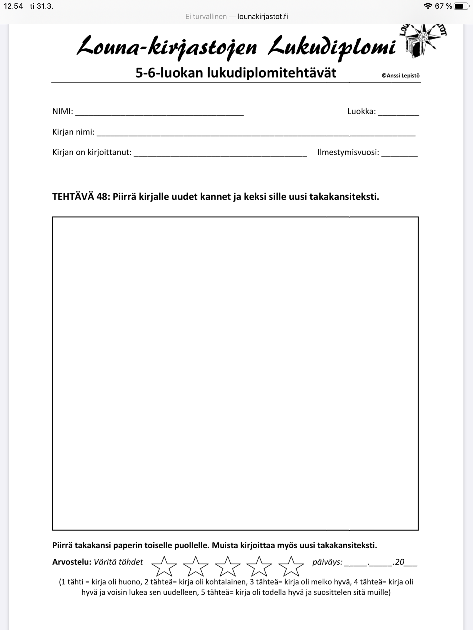 13. Kirjoita jonkun kirjan henkilön puolesta sivu ystäväkirjaan. Ystäväkirjan sivun saat opettajalta.