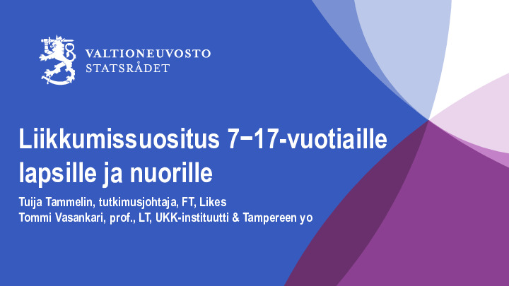 Tuija Tammelin ja Tommi Vasankari - Liikkumissuositus 7−17-vuotiaille lapsille ja nuorille, 7.4.2021.pdf Jaa Sulje Tämän tiedoston tekstivastine: (tyhjä tekstivastine) Tuija Tammelin ja Tommi Vasankari - Liikkumissuositus 7−17-vuotiaille lapsille ja nuorille, 7.4.2021.pdf 2.1 Mt