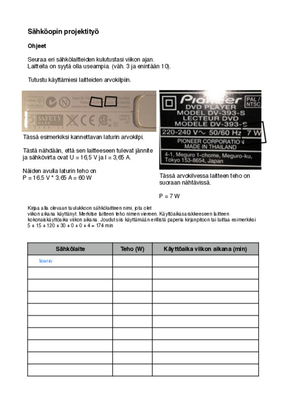 Ohjeistus tulostettava versio sisältää taulukon tulosten kirjoittamista varten Jaa Sulje Tämän tiedoston tekstivastine: (tyhjä tekstivastine) sähköprojekti.pdf 75.8 kt Kommentit Kirjaudu sisään lisätäksesi tähän kommentin