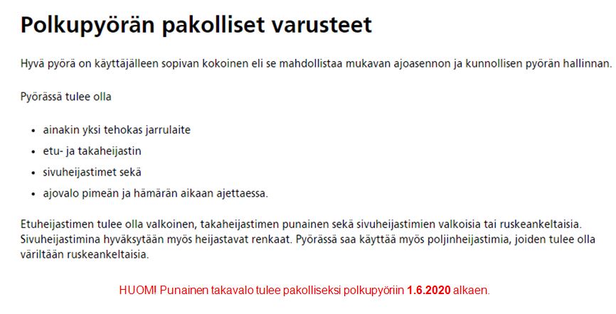 Jakaminen Sulje Polkupyörän pakolliset varusteet Pysyvä osoite https://peda.net/id/dc147fee7e2 Pysyvä tiedoston latausosoite https://peda.net/id/dc147fee7e2:file/download/7ee3f45e9fa1bb9f95526366a6990da2eff2e3f0/Polkupy%C3%B6r%C3%A4n%20pakolliset%20varusteet.JPG Jakaminen muihin palveluihin Share this page to Facebook QR-koodi