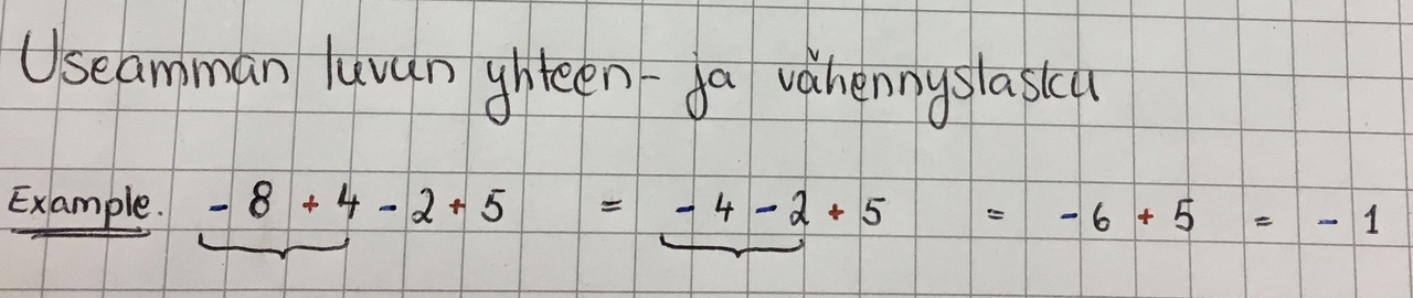 15. Useamman luvun yhteen- ja vähennyslasku