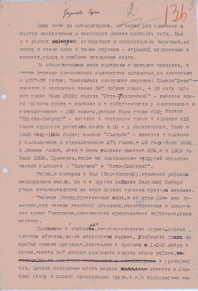 - This letter documents in great detail the devastating effects of collectivization in the Novosibirsk area of Siberia. An accompanying physician's report describes the deleterious medical conditions the famine has produced. This document is among the first detailed descriptions of the collectivization and its results in Siberia.