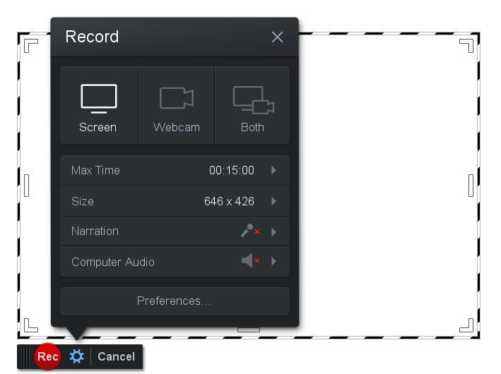 04. Käynnistä sovellus/mene www-sivulle, jolta haluat tallentamisen tehdä. Säädä tallennusalue haluamaksesi reunoista raahaamalla ja klikkaa "REC" aloittaaksesi tallentamisen.