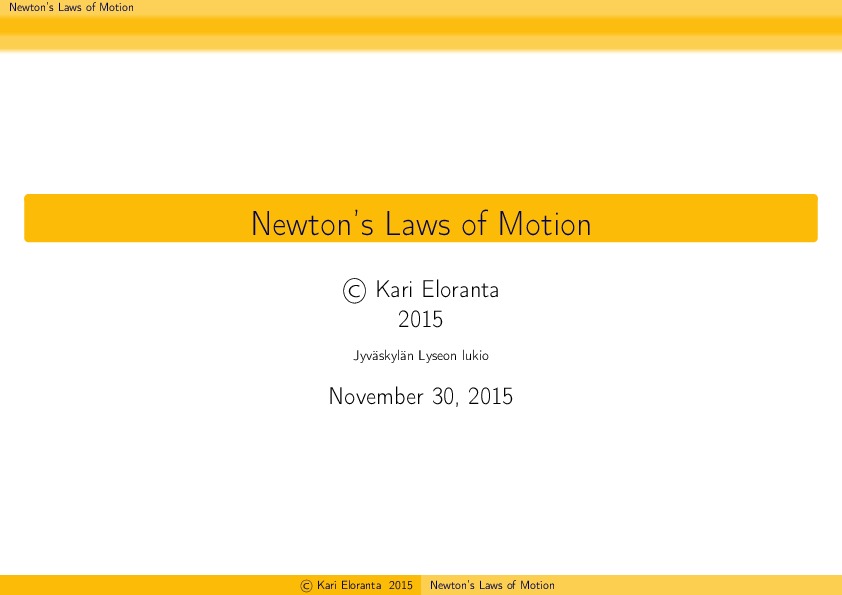 5 Newton's Laws Jaa Sulje Tekijä: Kari Eloranta Tämän tiedoston tekstivastine: (tyhjä tekstivastine) Newton20151130.pdf 226.8 kt Kommentit Kirjaudu sisään lisätäksesi tähän kommentin