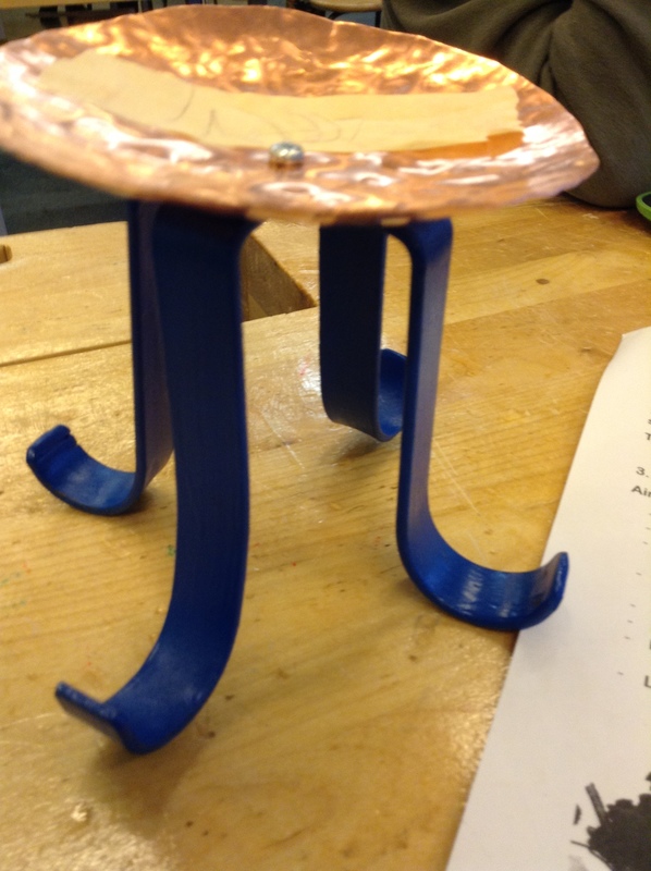 4 Ekaksi sahattiin metallia ja sitten tehtiin roihukuppi ja sen jälkeen hiotiin se ja maalattiin ja tehtiin arvio.
