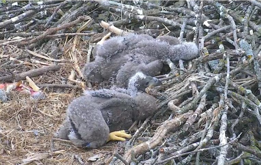 Jag kollade på djurwebbkameran igår den 25.4 kl. 1:07 pm (amerikansk tid) dvs. kl. 21:07 finsk tid. Jag såg de två ungarna i boet liggande och de eventuellt väntade på mat.