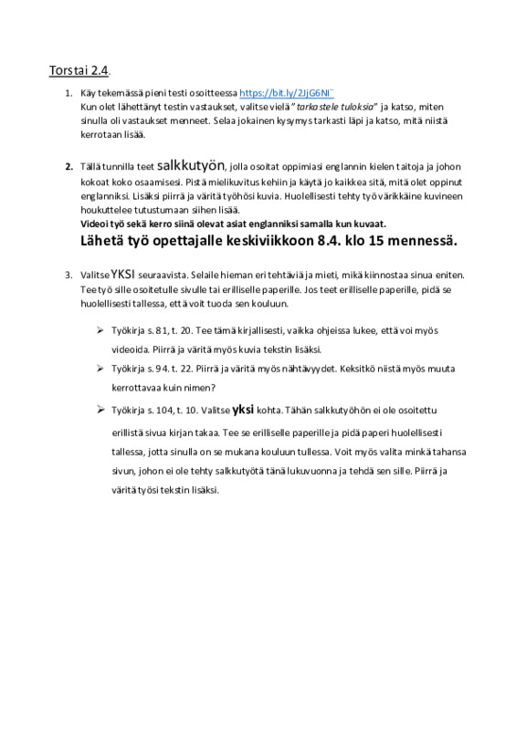 Ohjeet to 2.4. ja pe 3.4.