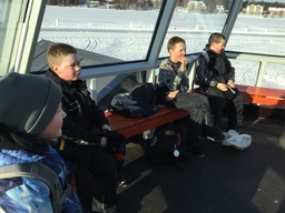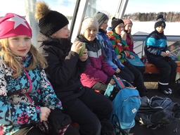 Lähdimme vielä yhden kerran hiihtoretkelle kauniina pakkaspäivänä ”lasilaavulle”. Siellä meitä odotti Jonin ja Nikon papan tekemä nuotio. Olipa mukava, kun tuli oli jo valmiina! Makkarat ja vaahtokarkit tekivät kauppansa. Kokeilipa joku vipukelkkaakin. Auringon säteitten lämmittäessä lähdimme koulua kohti.