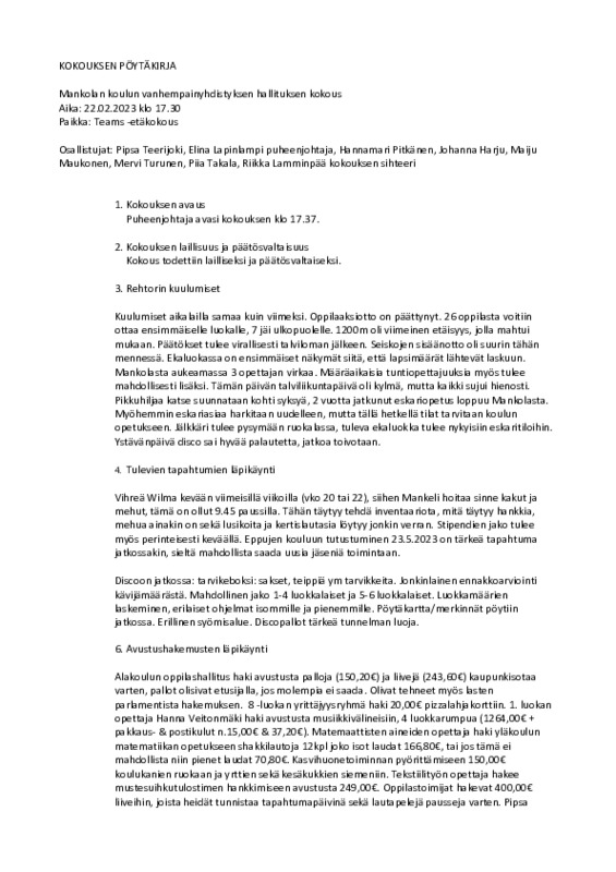 Mankeli.pöytäkirja 22.02.2023.pdf Jaa Sulje Tämän tiedoston tekstivastine: (tyhjä tekstivastine) Mankeli.pöytäkirja 22.02.2023.pdf 89.4 kt