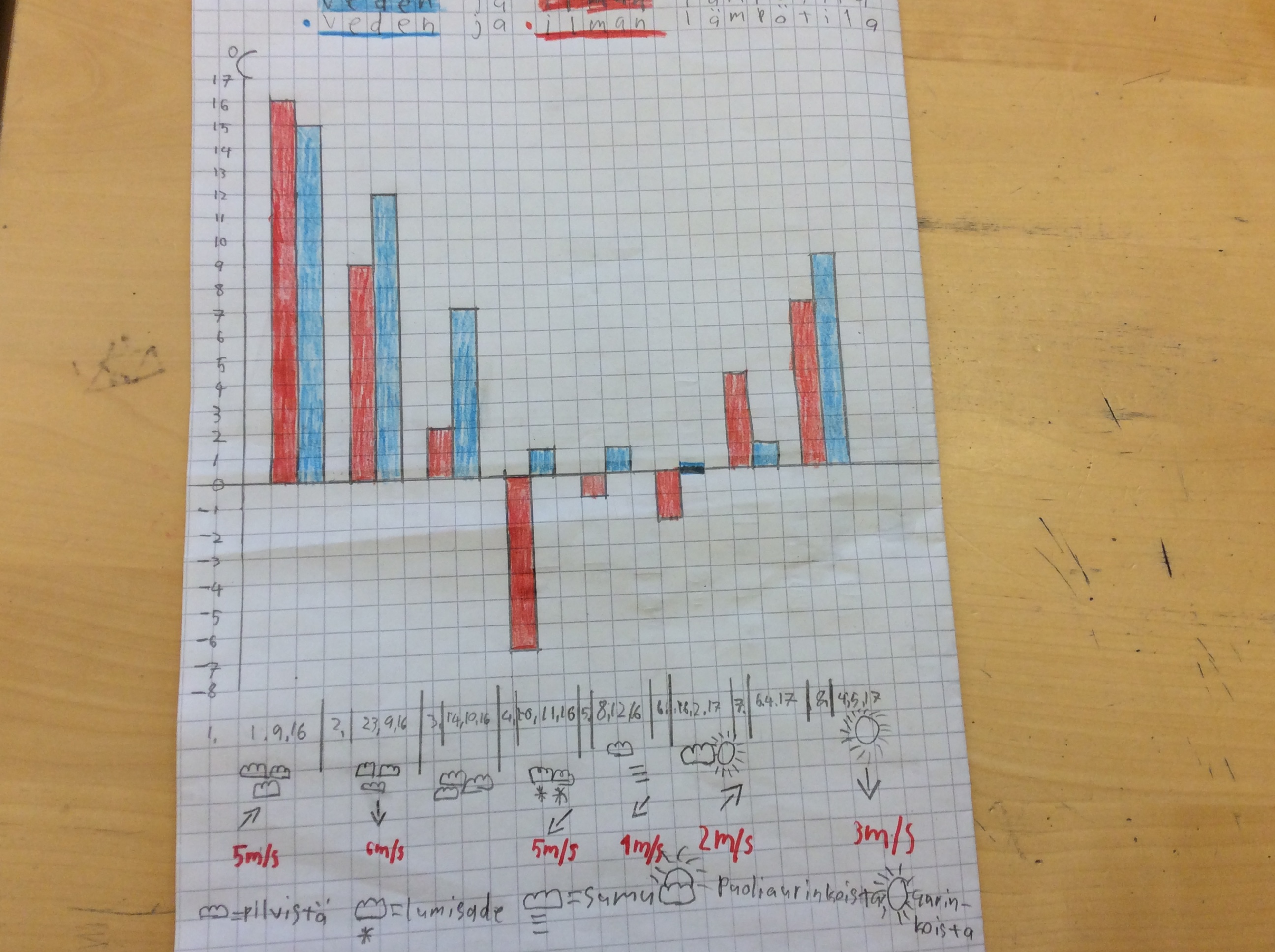Yhteenveto veden ja ilman lämpötilasta