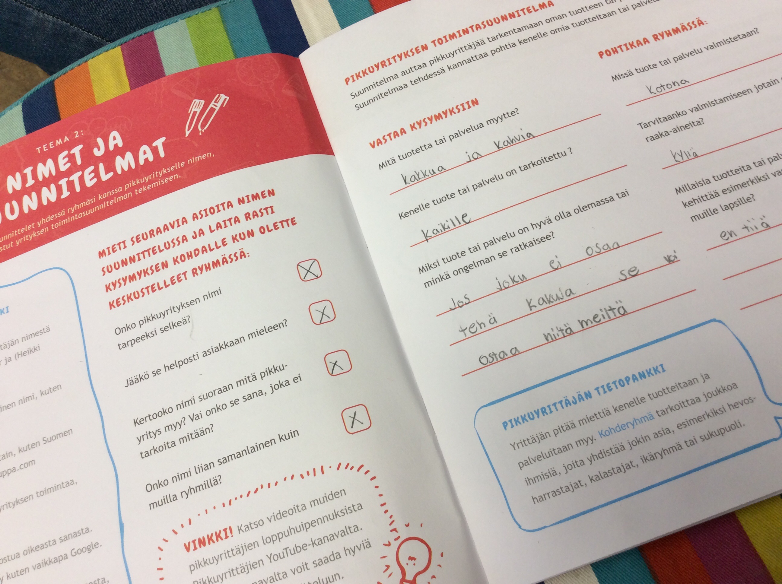 5. Tällä kerralla mietittiin myytävälle tuotteelle sopiva hinta. Laadimme myös raaka-ainelistan ja selvitimme niiden hinnat.
