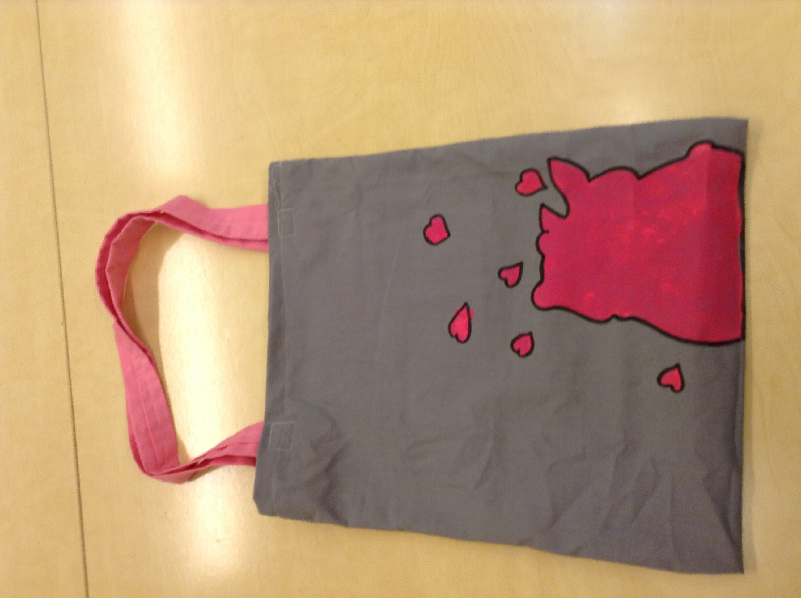 Kun se oli tehty laitoin kassin kulmat yhteen ja ompelin kassin kiinni. Paitsi suu aukon.